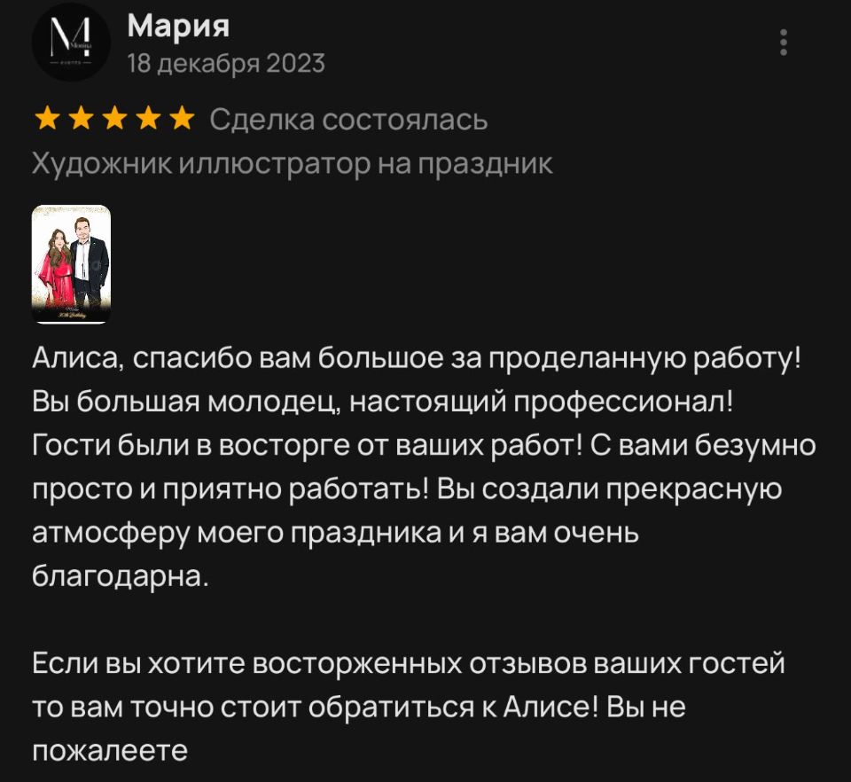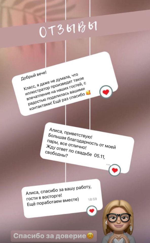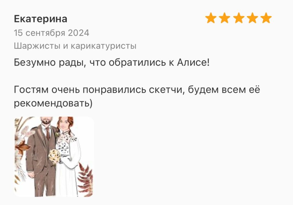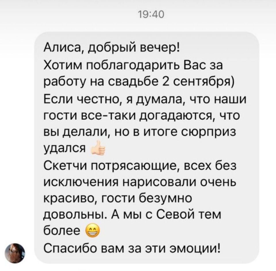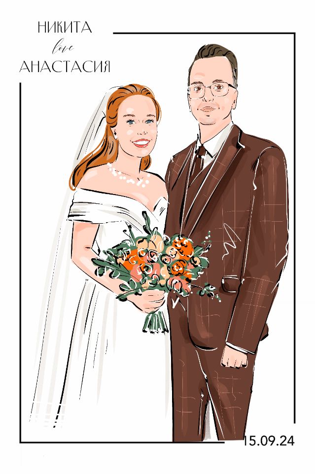 Я с любовью создаю яркие, стильные скетчи ваших гостей за 8 минут!